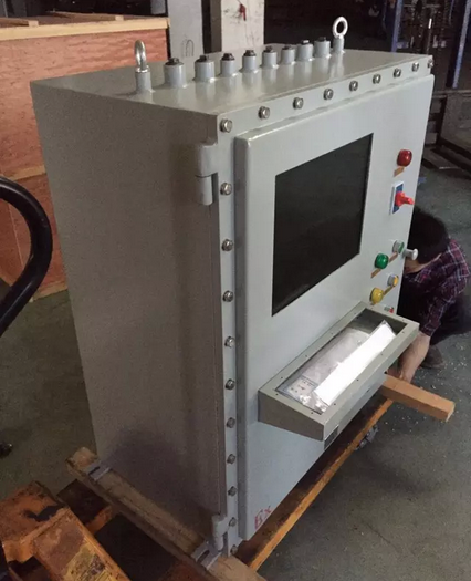 PLC帶觸摸屏做成防爆控制柜或者防爆控制箱外形可以根據(jù)用戶的不同需求而定,一般為立式、琴臺式,壁式等等,內(nèi)置PLC與觸摸屏連接,可以通過防爆鍵盤,防爆鼠標(biāo)進(jìn)行控制即可,觸摸屏密封保護(hù)為5mm厚度的鋼化玻璃進(jìn)行防爆密封處理。